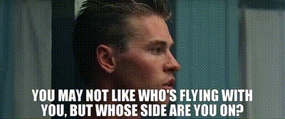So it’s like how Iceman challenged Maverick in Top Gun: “Whose side are you on?”
